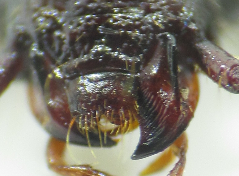 This one(with the identical other two bigger specimens) is very dark coloured.Its labrum is very excavated at the middle.When I follow the identification key, I reach to O.obscurior.But O.obscurior has a very short pubescence.But these three specimens have a distinctly long pubescence.So I am stucked again :(