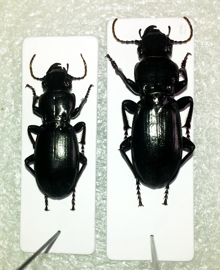 Ma il tuo figliolo fa anche le foto? Dovresti aiutarlo e consigliargli di non fotografare gli esemplari a testa in giù! Soprattutto dovrebbe tenere la camera perpendicolare al soggetto, se no non si capisce la forma reale: in questo Percus le elitre sembrano molto più corte di quello che sicuramente sono nella realtà. Ricordati anche di inserire sempre le dimensioni in mm. CiaoPiero |