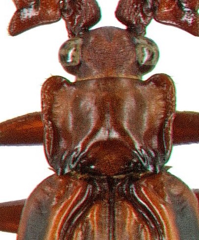 Seguendo le tabelle di Nagel mi porta a Heteropaussus quadricollis (Wasmann, 1910), ma vedo che assomiglia molto anche a H. alternans e H. trapezicollis. Lunghezza dall'apice della testa all'apice delle elitre: 10,2 mm |