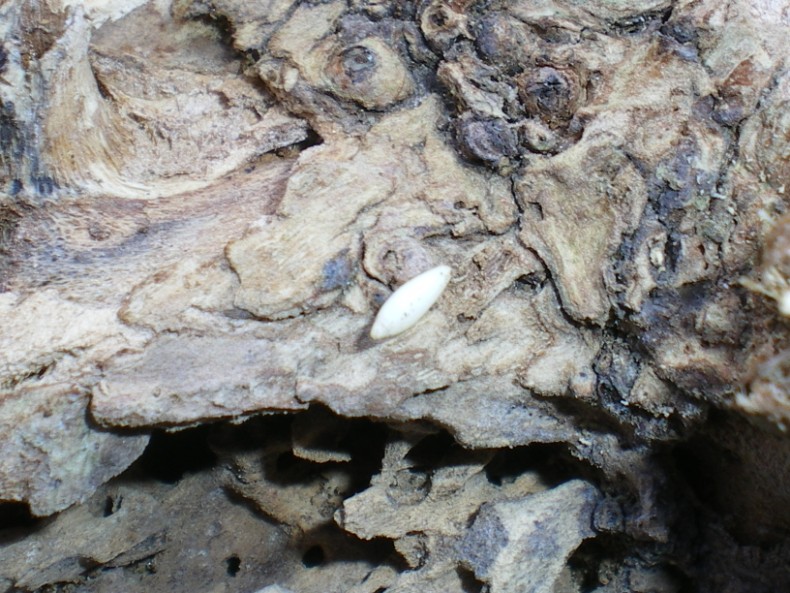 La specie è banale, ma mi ha colpito che la femmina ha deposto una trentina di uova (lunghe 3-4mm) sui vari tronchetti che avevo preso!!! :o