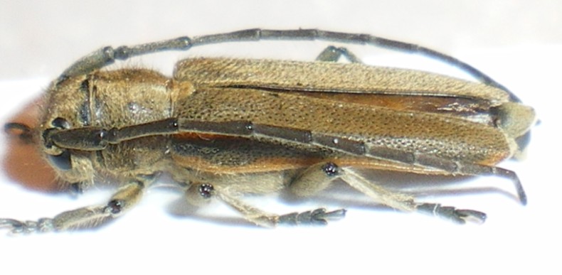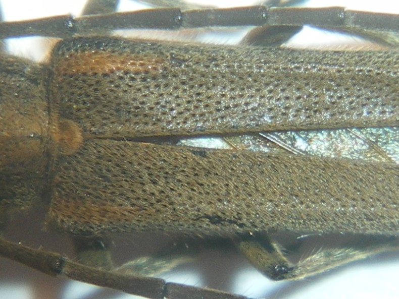 A volte lo stelo in cui si trova la celletta si rompe per cause diverse e l'adulto fuoriesce prima di essere del tutto sclerificato. Questo succede in genere per le Agapanthia o per altri Phytoeciini, mentre è difficile che avvenga per la Musaria tirellii o per la M. cephalotes, la cui larva costruisce un robusto bozzolo di filamenti strettamente intrecciati. Penso ad un esemplare teratologico.