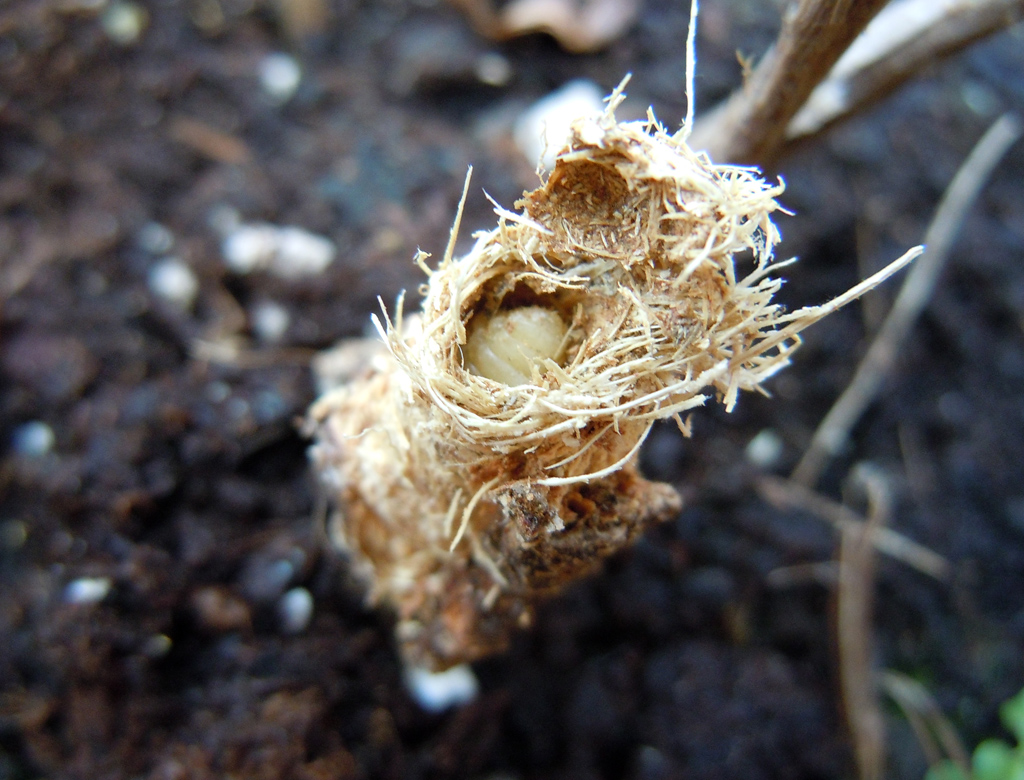 Molto interessante. Per cui, i bozzoli sono appena sotto la superficie, alla base del fusticino. Hai detto che li hai estratti ad agosto. Quindo restano nel bozzolo fino a maggio, quando sono in attività gli adulti? Per cui, sarebbe teoricamente possibile, neve permettendo, cercarli anche d'inverno?