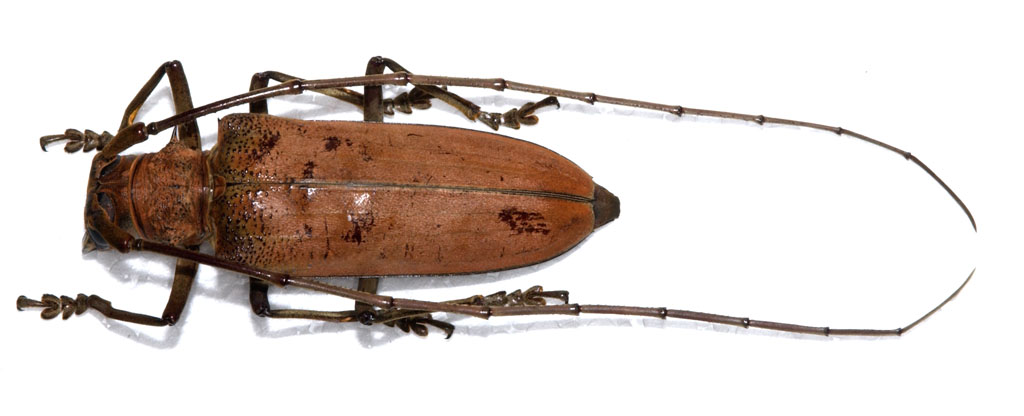 Questa mi da problemi di identificazione. Non so se sia una grossa Batocera (numitor ? gigas ?) od una Abatocera (forse leonina ?). Lunghezza 76 mm