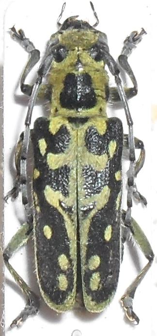 reduce da inscurimento del colore delle poche (6) Saperda scalaris che ho trovato sinora (dovuto sicuramente al contatto con l'etere - solitamente, infatti, le mettevo nel classico flacone con un po' di carta igienica e qualche goccia di etere, che aggiungevo di tanto in tanto con l'introduzione di nuovi insetti all'interno del flacone), tempo fa ho saputo qui sul forum che questa specie, come altre, non deve entrare in contatto con l'etere, per cui con questa ho fatto una prova: come scritto più sopra, ho messo la Saperda in un vasetto e all'interno dello stesso ho posizionato una provetta ovviamente aperta, con un pezzetto di carta igienica con qualche (4 o 5) goccia di etere, così che non vi potesse essere contatto diretto tra il liquido e l'animale. Dopo un'oretta ho tolto la provetta con l'etere e la sera dopo (cioè questa sera) ho preparato la Saperda su cartellino.