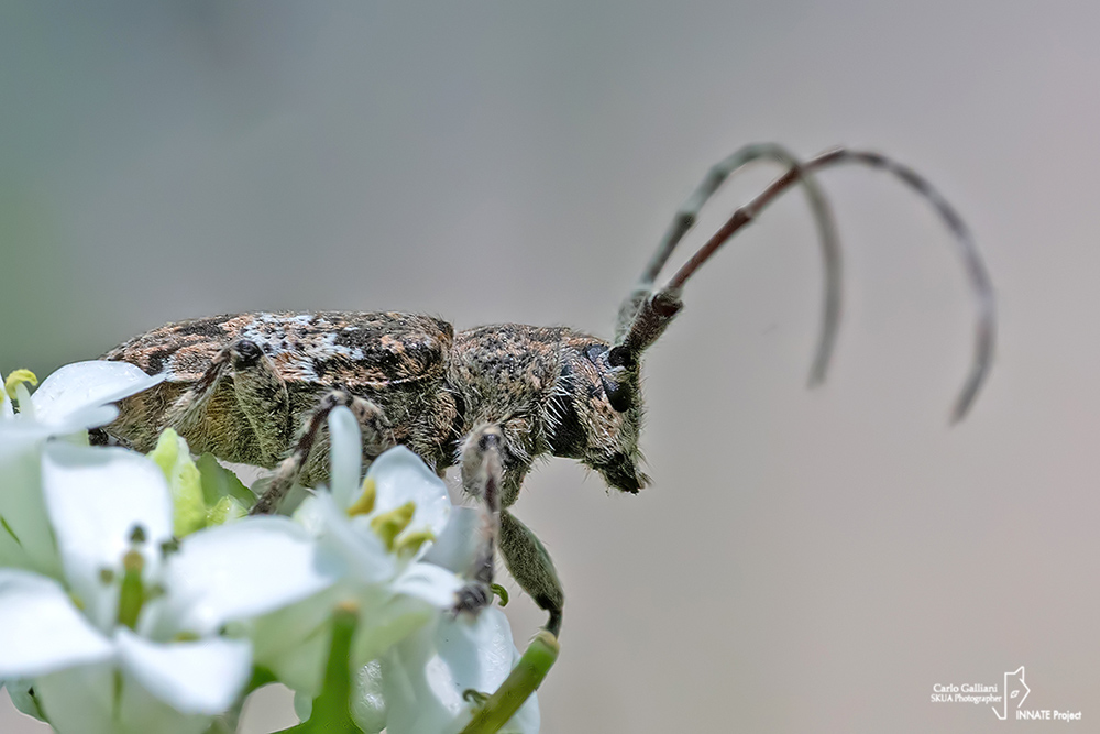 Ciao Carlo, non è che hai una foto dorsale? Da queste foto si capisce poco. Così su due piedi mi verrebbe Mesosa nebulosa, ma sarebbe meglio avere qualche foto in più. |