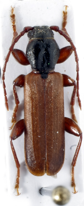 2 - Pronoto opaco, molto densamente rugoso-punteggiato e ai lati densamente granuloso; elitre con peluria scura, ma rivestite di peli giallo-grigi nel primo terzo dove, per questo, appaiono più chiare che all'indietro ............................................................................................... fuscum (Fabricius, 1787)