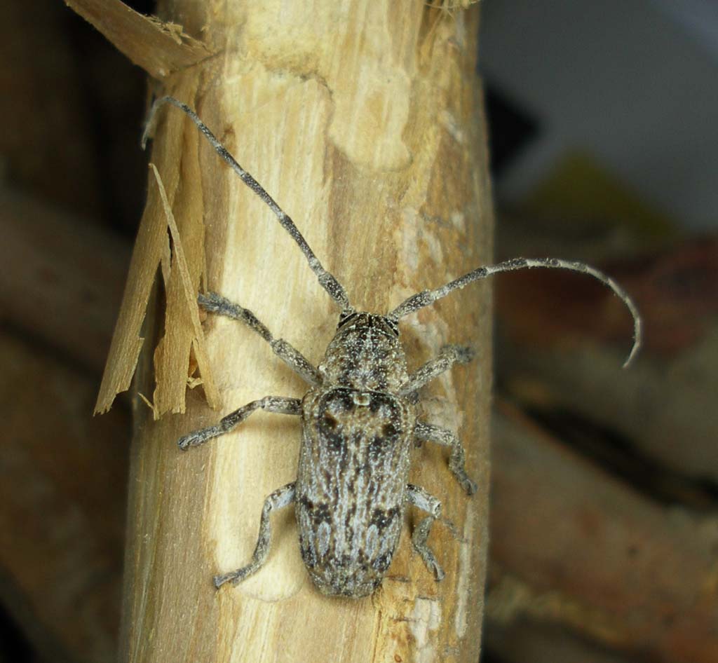 Crossotus katbeh Sama, 2000 Un altro esemplare intravisto da Plagionotus durante la sua visita a Cesena. Specie endemica della Wadi Araba (Valle Araba) (Arava Valley) nei due versanti giordano e israeliano, dove si sviluppa nel legno morto di Acacia. L'esemplare figurato si รจ sviluppato (assieme ad altri) da larve presenti in un ramo indebolito da un precedente attacco del Buprestide Agrilus andresi Obenberger, 1920. |