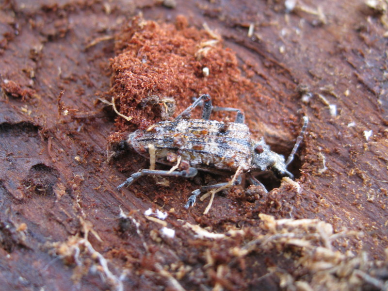 Sull'albero morto di Larix decidua che oggi ha fornito il maggior numero di soggetti fotografati. Rhagium inquisitor - Cerambycidae nel suo "nido". Sono abbastanza sicuro che sia lui. Per la cronaca, ce n'erano quattro vicini.