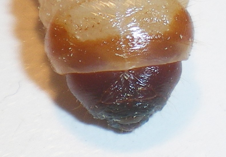 Anche se ci vedo somiglianze nella capsula cefalica, il tubercolo anale è uno solo...