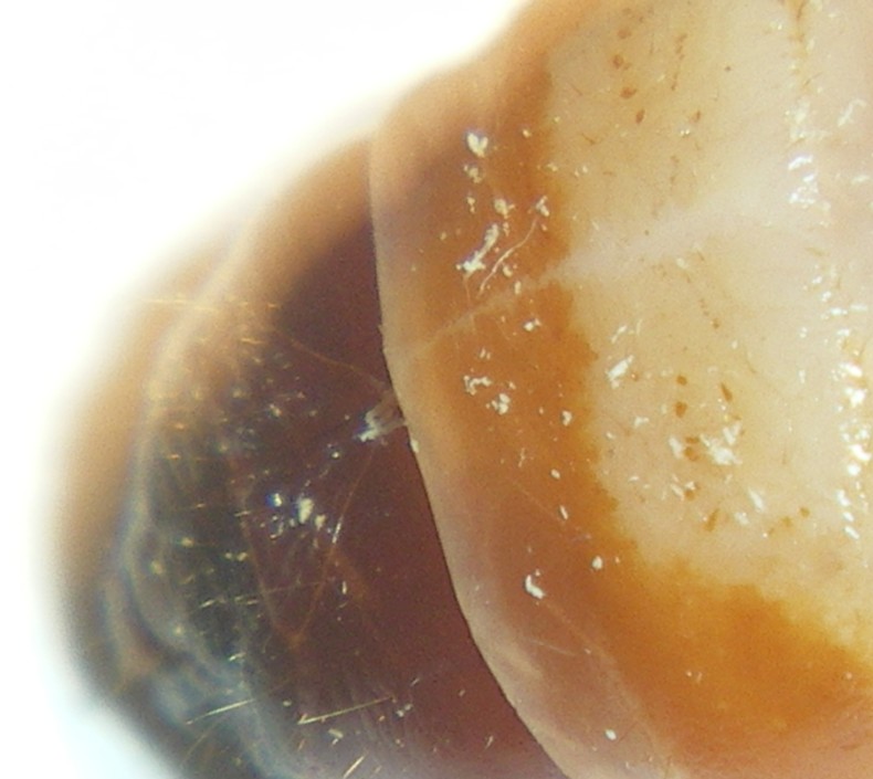 Purtroppo (e per fortuna) è a ridosso della plastica del contenitore e le foto sono pessime...