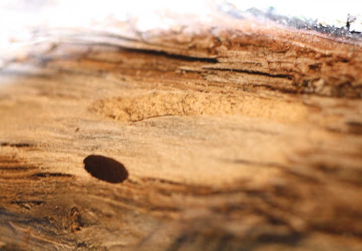 allego anche l'immagine del foro di sfarfallamento, vicino al quale si scorge traccia della parte finale della galleria trofica.