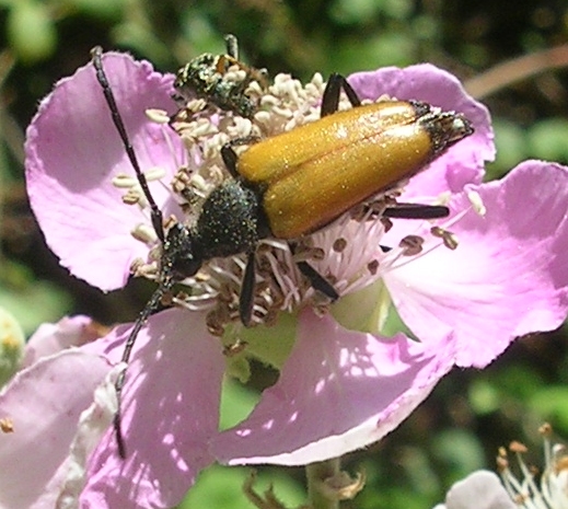Tra i tanti insetti sui fiori di rovo, anche questo Cerambycidae