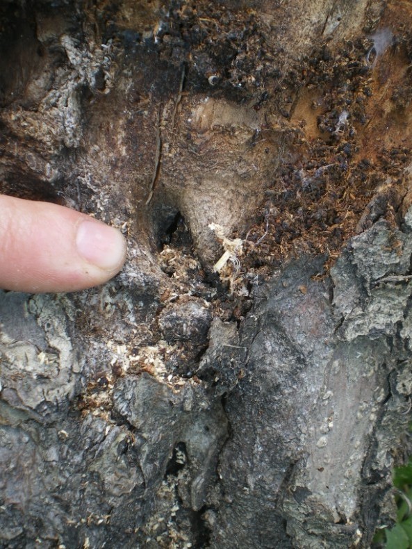 Perché non ti sembra matura? Come la terreste? Potrebbe essere Cerambyx? Vi ricordo che a pochi km ho preso il C. nodulosus... C'è anche un altro melo morente anellato alla base da cui esce rosura... |