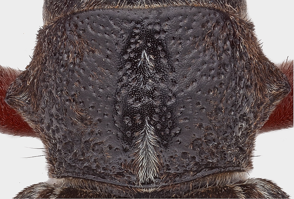 Per quasnto riguarda i tuoi Doircadion questa seconda foto rappresenta la forma autocroma della femmina di quello postato in precedenza. Il gruppo cinerarium (al quale questo appartiene) si riconosce per la presenza di una banda di pubescenza nera che affianca la banda bianca suturale. La determinazione "sulcipenne ssp. caucasicum" intesa nel senso di Lazarev/Danilevsky credo possa andare bene anche se questo è davvero indistinguibile dai cinerarium turchi o iraniani.