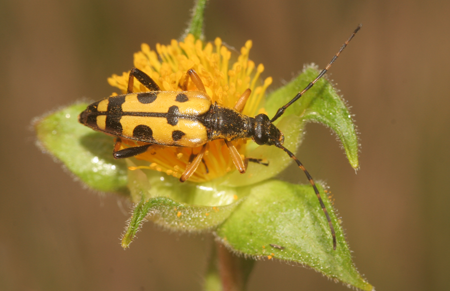 Sui fiori di cisto che allegri prosperavano fra colline madonite divorate anni orsono dalle fiamme e mentre ai medesimi piromani immaginavo originali torture incontravo ieri questo cerambice inedito per l'inesperta mia persona: trattasi di Rutpela maculata credo, ma la sottospecie mi è oscura: in Sicilia da quel che ho subodorato è presente una sottospecie nomata nigricornis. Convive questa sottospecie con quella nominale dalle mie parti?