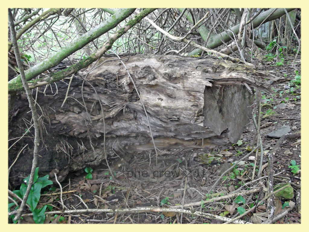 potrei ripassare a fare la foto al tronco, ma data la decomposizione e il fango non penso si possa determinare...