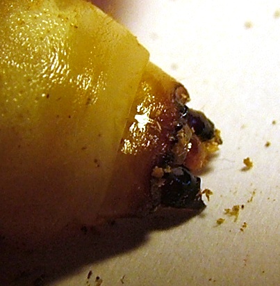 Armati di pazienza, una larva di ergates di 30 mm. è parecchio indietro in termini di sviluppo.