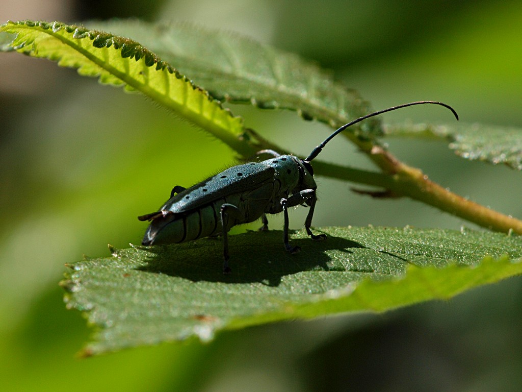 La più comune delle nostre Saperda, ma non facile da fotografare in natura, specialmente in giornate calde come ieri, quando volano come mosche. Coi maschi ci ho rinunciato!