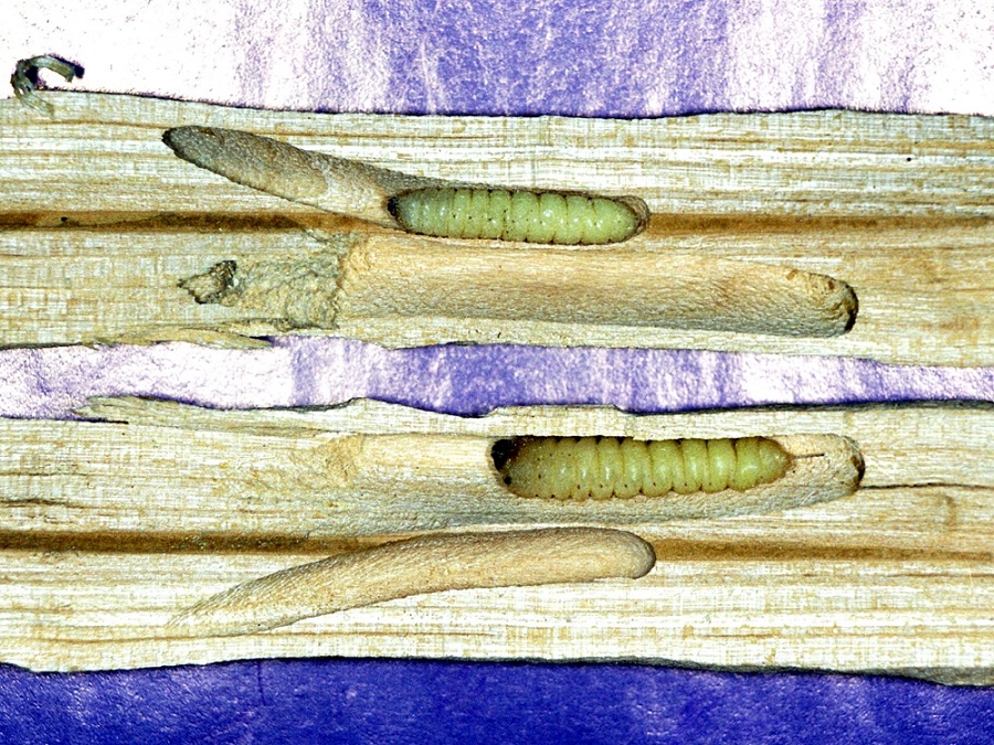 R. macropus - larvae in the pupal cell; Polska, Warszawa, Rakowiec, IV 2005
