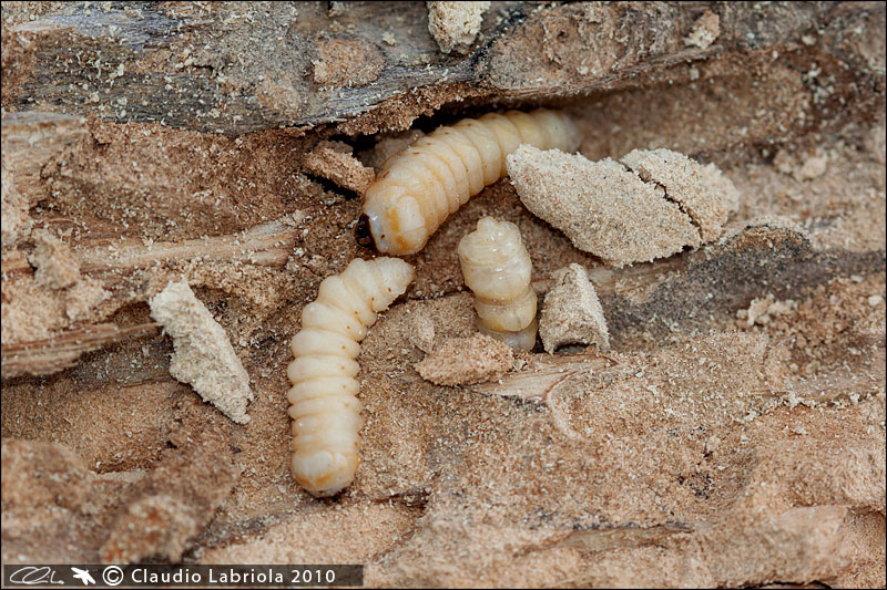 per risponderti passo all'ultima domanda. Qualunque cosa sia le possibilità di ottenerlo ex-larva sono molto alte. Infatti larve di Cerambycidae (in questo caso Cerambycinae) che vivono nel legno secco generalmente non hanno grossi problemi (come per i Buprestidi ad esempio) nel continuare a nutrirsi e a svilupparsi una volta estratte dal ramo e inserite nuovamente.
