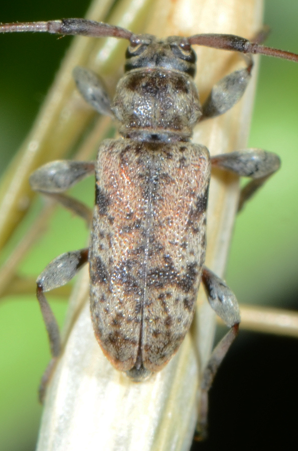 Un piccolo Cerambycidae (solo 6 mm il corpo, le antenne circa il doppio) preso ieri. Ho pensato a Leiopus femoratus Fairmaire 1859, ma in Sardegna non è dato (per i Cerambycidae i dati di FAUNAEUR sono sinora risultati sempre corretti).