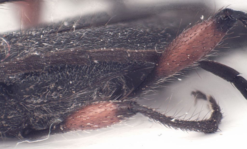 Ciao L'ho guardato meglio al microscopio e non vedo dentini sugli antennomeri. Inoltre ho trovato su FEI la seguente descrizione postata da Gianfranco Sama che mi sembra calzare a pennello: "femori con largo anello nero alla base, antenne più gracili senza dente all’apice dei singoli antennomeri; pronoto e base delle elitre con lunga pubescenza eretta, pronoto più appiattito, con punteggiatura regolare, senza aree lucide ................... femoratus Linnaeus" La pubescenza non è uniformemente distribuita, ma magari si è "spelacchiato" ...... Oggi cerco di postare vqualche foto aggiuntiva dei caratteri Grazie ancora e buona giornata Paolo |