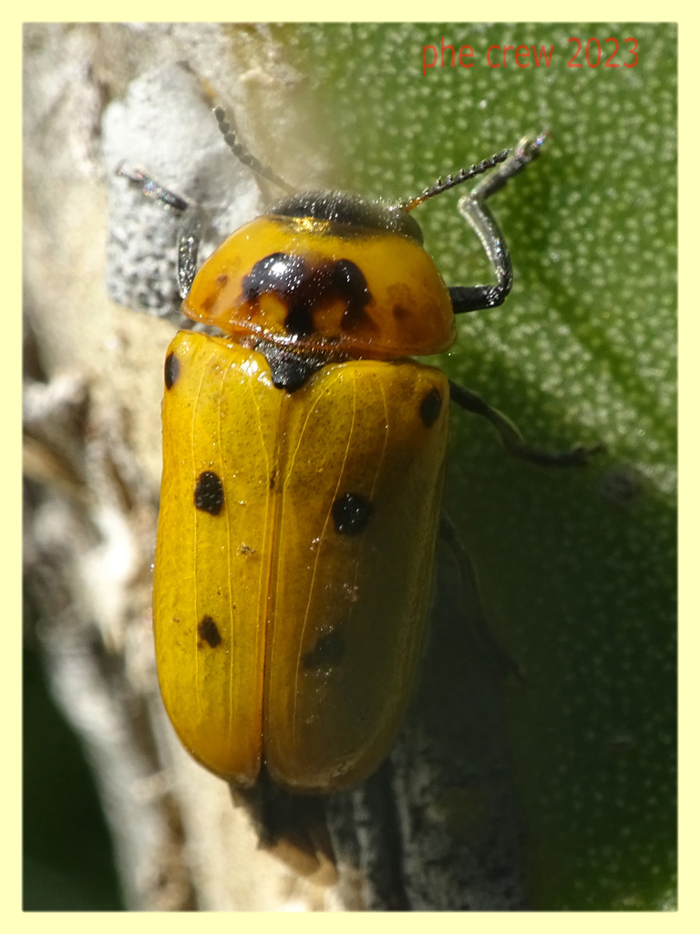 ...una decina di esemplari di Tituboea biguttata su Lentisco. ...questo e' un altro esemplare ma della stessa specie con punti piu' piccoli, che si e' fatto fotografare su una foglia di Fico D' India. |