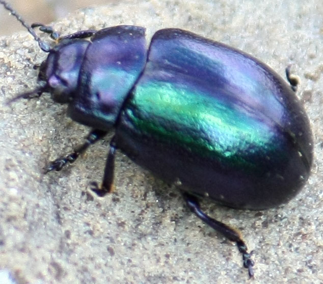 Rivedendo con il senno del poi l'esemplare di Mimmo, devo dire che sia Davide che Giuseppe avevano ragione: credo sia una Chrysolina, e per l'esattezza una Chrysolina (Threnosoma) sirentensis (Meier, 1900). Ciò che mi aveva tratto in inganno è il colore bluastro dominante, ben diverso dal nero degli esemplari di Abruzzo. Se non ho preso una toppa bestiale, ho identificato come tale una femmina cedutami da Iuri Zappi e catturata in Basilicata. Riguardando la foto, mi si è accesa "la lampadina"! Anche il mio esemplare è decisamente blu. Per darvene idea, lo allego qui sotto.