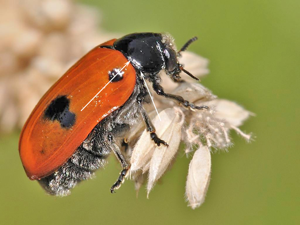 Claudio potrebbe confermarlo visionando il file ad alta risoluzione, ma anche questo esemplare, come questo, mi sembra che abbia il margine posteriore del pronoto appiattito e puntinato, quindi potrebbe essere Clytra quadripunctata (Linnaeus, 1758).