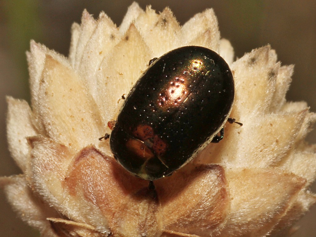 Questa dovrebbe essere Chrysolina hyperici, anche se non mi aspettavo di trovarla ora, quando non c'è più l'ombra di un iperico. Questa stava su una infiorescenza secca di Cephalaria.