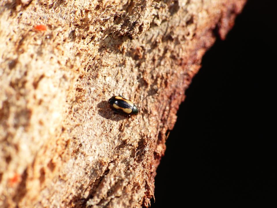 Sotto una corteccia di eucalipto. Lunghezza sui 2 mm scarsi.