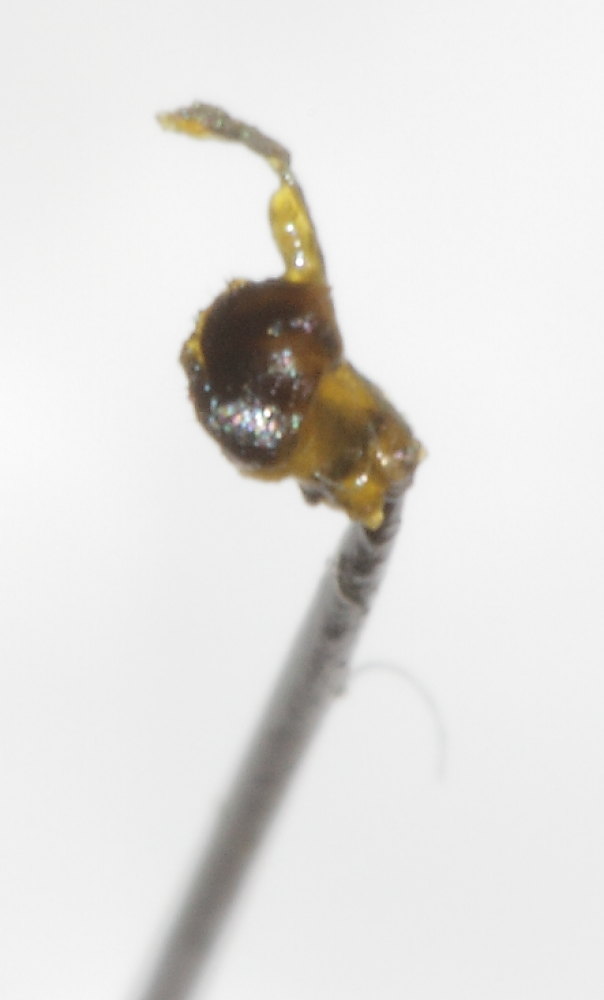 Ciò che ho estratto con estrema fatica e perdita inesorabile di diottrie!!!....non credo sia l'edeago!!....lo mostro per scrupolo, ma non mi sembra proprio, a questo punto desumo che sia una femmina!....la difficoltà sta anche nel fatto che non possiedo ancora uno stereomicroscopio e quindi, piazzo una lente, fissandola davanti all'insetto e mi avvicino, utilizzando lo spillo praticamente a 2cm dall'insetto......roba da matti!!!..ma per ora non posso fare diversamente!