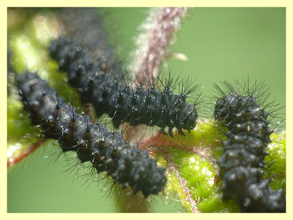 ....l' anno scorso ho prelevato da un campo su di un Rubus sp. piu' di una ventina di larve di Saturnia pavoniella destinate a morire perche' quel campo viene arato tutti gli anni. Ce ne erano molte di piu' sicuramente piu' di 50. Le ho allevate semplicemente con foglie di Rubus sp.. Le piccole larve erano di circa 12 mm.