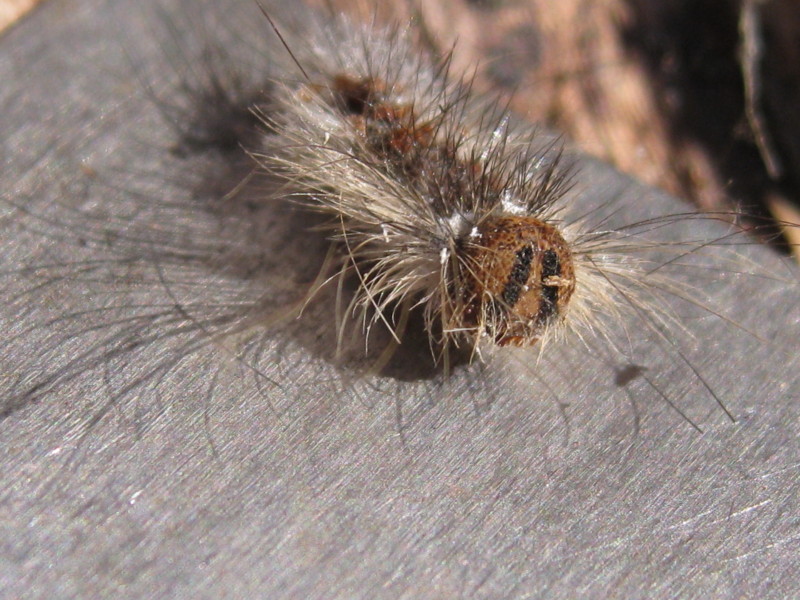 Note: nello specifico mi ha incuriosito questa larva che è ancora intera, ma non ha concluso il ciclo. Forse quelle presenze bianche che si notano tra i peli rappresentano i parassitoidi che per qualche motivo sono morti e anche la larva, indebolita, ha fatto la loro fine. Mah?!