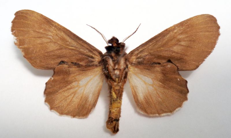 Grazie Carlo, ho aggiunto altre foto. La colorazione delle ali posteriori riflette la postura dell'insetto posato e la parte esterna più scura, che rimane visibile a lato delle anteriori, ha evidente funzione di mimetismo, rompendo la linearità del profilo alare: qualcosa di simile (colorazione posteriori) è anche nelle nostrane Peridea e Stauropus nelle Notodontidae e per la funzione mimetica anche in Gastropacha e Phillodesma nelle Lasiocampidae. Questa invece vedo che è un Lymantriinae. D. styracis Felder, 1874 e D. erratica (Schaus, 1906) sono citate del Venezuela.