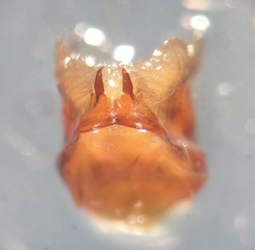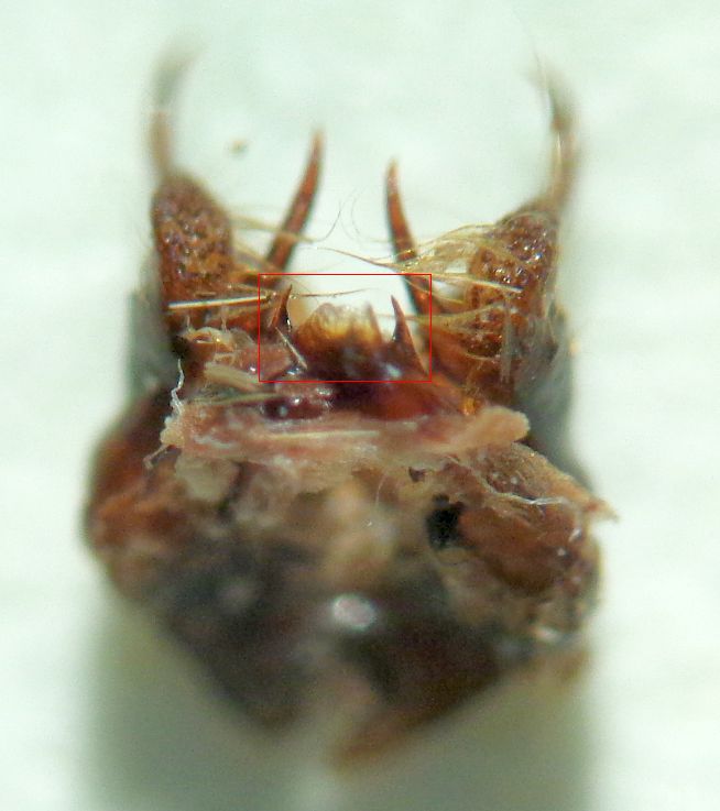 L'esame ha riguardato in particolare il tegumen con i due lunghi uncus appuntiti in athalia e mancanti o appena abbozzati (in "bottoni") in celadussa. Questo esemplare poi, di ap. alare mm 32 appena ha il tegumen con due uncus più corti del normale ma comunque ben sviluppati per cui per me è athalia; esemplari di Chiareggio e Alpe di Fora, sempre in zona, hanno uncus ben più lunghi, tipici di athalia (ultima foto). Nella manipolazioine un'antenna si è staccata.