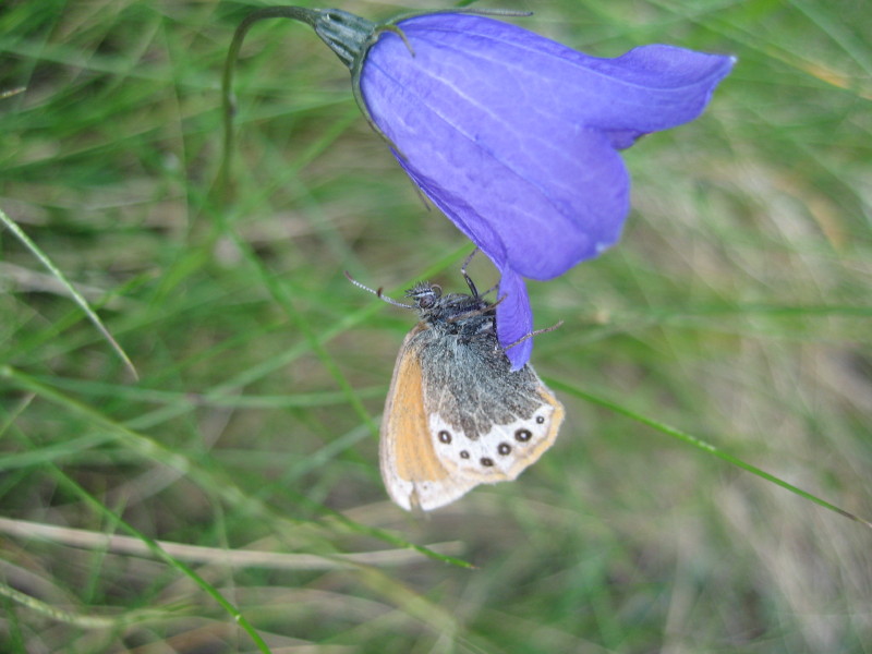 Su fiore di Campanula sp. una Nymphalidae "d'alta quota". Potrebbe essere Coenonympha glycerion... ma forse è un azzardo.