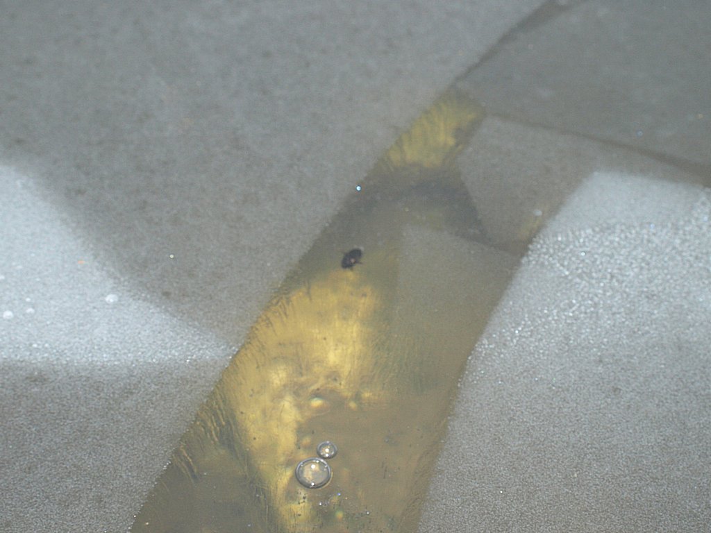 Da lontano (6-7 m di distanza) l'avevo preso per un Calathus che camminava lentamente per il freddo, invece è uno di questi piccoli ditischi (circa 1 cm) che cammina tenendosi sollevato sulle zampe, contrariamente a come fanno di solito, probabilmente per non restare col corpo a contatto col ghiaccio che ricopre il cemento del bordo dell'abbeveratoio.