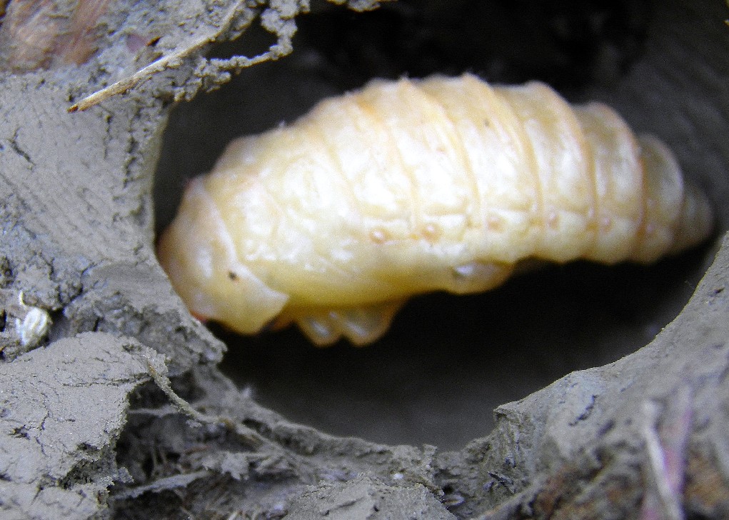 Tra le poche cose che sono riuscito a trovare domenica vi è questa pupa, a qualcuno viene in mente di cosa puo essere? Le dimensioni sono di tutto riguardo: circa 34 mm . Stava sotto una pietra in una cella molto ampia( ultime due foto). La vegetazione dei paraggi è praticamente costituita da Phragmites australis, un po' di graminacce che non so determinare e piante alofile tipo Salsola e Limonium.