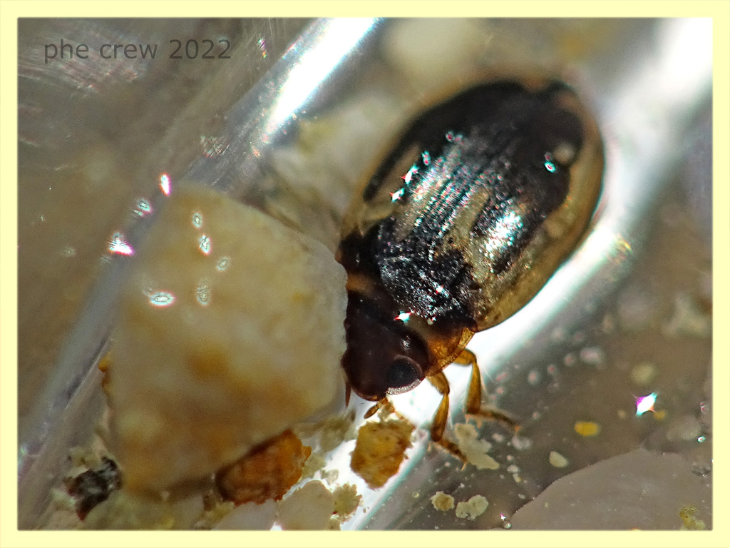 ...Hydroglyphus geminus; solitario esemplare che se la scorrazzava sul fondo della riva del laghetto. L' ho messo in una scatolina trasparente per fargli delle foto insieme ai detriti trovati sul fondo. Quando poi, dopo venti minuti che scattavo, si e' accorto di essere in "trappola" ha incominciato a spostare di peso con le zampe anche grossi detriti per trovare una via di uscita; di questo purtroppo si sono salvate solo due foto….la foto 2 e 3. :hi: