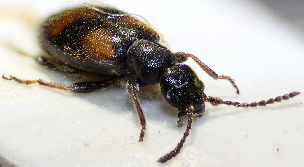 Si è un Anthicus, ma per la specie (visto che è una femmina) la devi vedere sotto, se ha il Prosterno lucido o zigrinato guarda qui http://www.entomologiitaliani.net/public/forum/phpBB3/viewtopic.php?f=161&t=29891&hilit=anthicus+antherinus