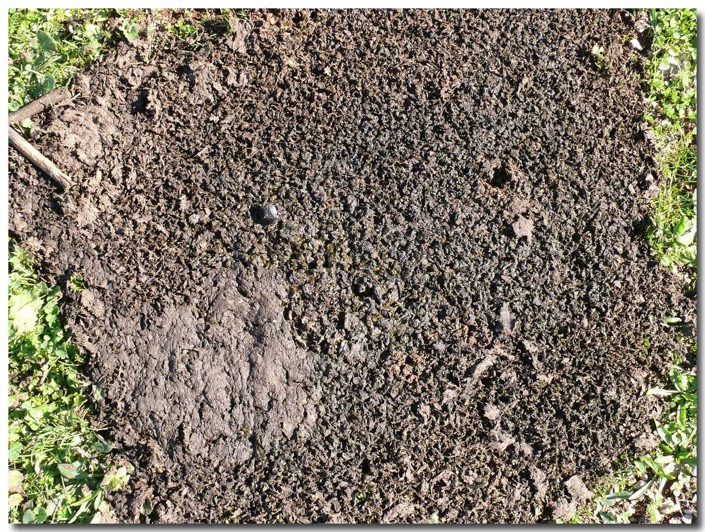 Se osservate la foto a maggiori dimensioni, potrete notare numerosi esemplari sulla superficie dello sterco e sull’erba tutto attorno (nella seconda immagine).