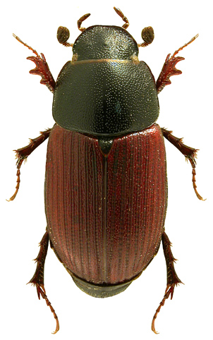 Sicuramente non è un Acrossus....la forma della testa dovrebbe essede del tutto diversa, e le dimensioni dovrebbero aggirarsi sul centimetro. Nonostante i limiti di questo catorcio di computer, mi sembra di notare la tipica colorazione vinaccia e le elitre stirate del: Sigorus porcus (Fabricius, 1792) - Aphodiidae La lunghezza dovrebbe essere intorno 5-6mm Vedi qui: viewtopic.php?t=12439oppure: http://www.hmyzfoto.cz/gscar.aph.html