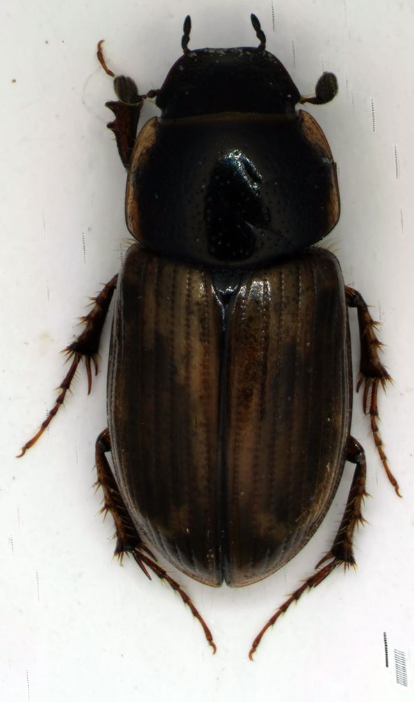 Di errori ne posso fare tranquillamente, ne faccio sovente...il bello è correggersi Comunque l'altro esemplare è sicuramente un maschio (più peluria, aspetto più depresso, pronoto più largo) ed altrettanto sicuramente è un prodromus, in quanto si intravvede la "spina tronca" nelle zampe anteriori (si vede nella zampina dx ). Nel maschio del reyi è invece regolarmente acuminata (la spina).Questo, invece è femmina.... ...e oltre ad un probabile prodromus non riesco ad andare.Ammetto che con gli aphodini, in molti casi vado ad occhiometro....il mio è un po' arruginito, ma ne ho visti parecchi negli anni passati