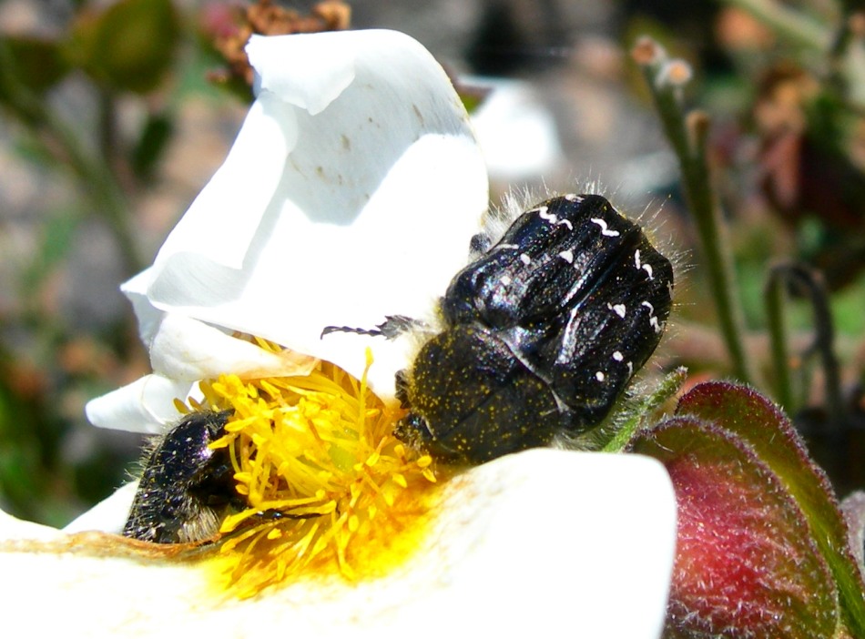 Nella foto seguente si intravede sullo stesso fiore anche una Oxythyrea funesta