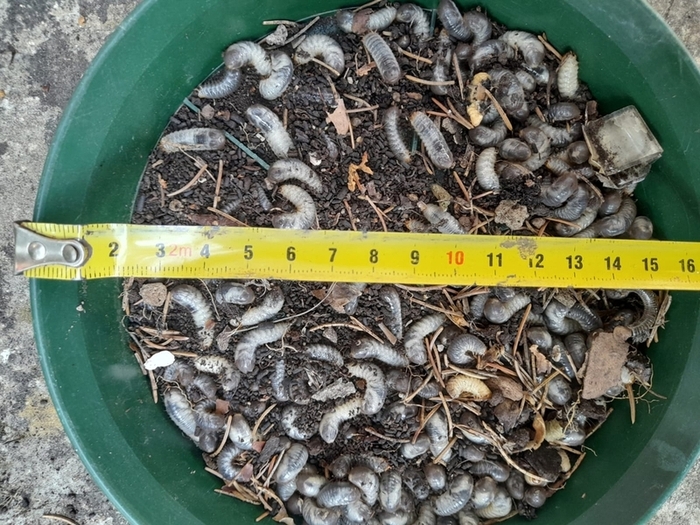 Queste sono tutte le larve che siamo riusciti a raccogliere, contenute in una sola fioriera.