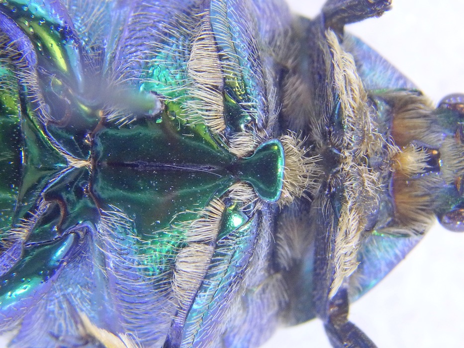 dunque ecco qua un cetonino raccolto in Macedonia, dimensioni 20 mm.; secondo diversi autori in Macedonia risultano presenti 2 sp. appartenenti al gen.Protaetia (Netocia) e cioè Protaetia cuprea obscura (Andersch,1797)e P. angustata (Germar,1817): il dubbio mi sorge osservando l'esemplare nelle foto, in quanto tenderei ad escludere P. angustata almeno per il fatto che la base del pronoto è decisamente più larga che lunga, il colore ceroso o "laccato" mi indurrebbe a pensare a P.cuprea obscura, così come l'apofisi triangolare, ma gli sterniti della parte ventrale a differenza della cuprea non virano sul violaceo come ho modo di notare su qualsiasi altro exx. in mio possesso della stessa area geografica , ma sono completamente di un bel verde brillante di cui non trovo riscontro sulla forma tipica...secondo voi di cosa si tratta? Non è che magari è una P. affinis?