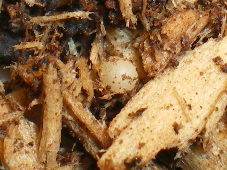 Ho dato una rapida occhiata al substrato, ed oltre a 5 uova ho trovato queste meravigliose microscopiche larvette!!! :hp: :hp: :hp: