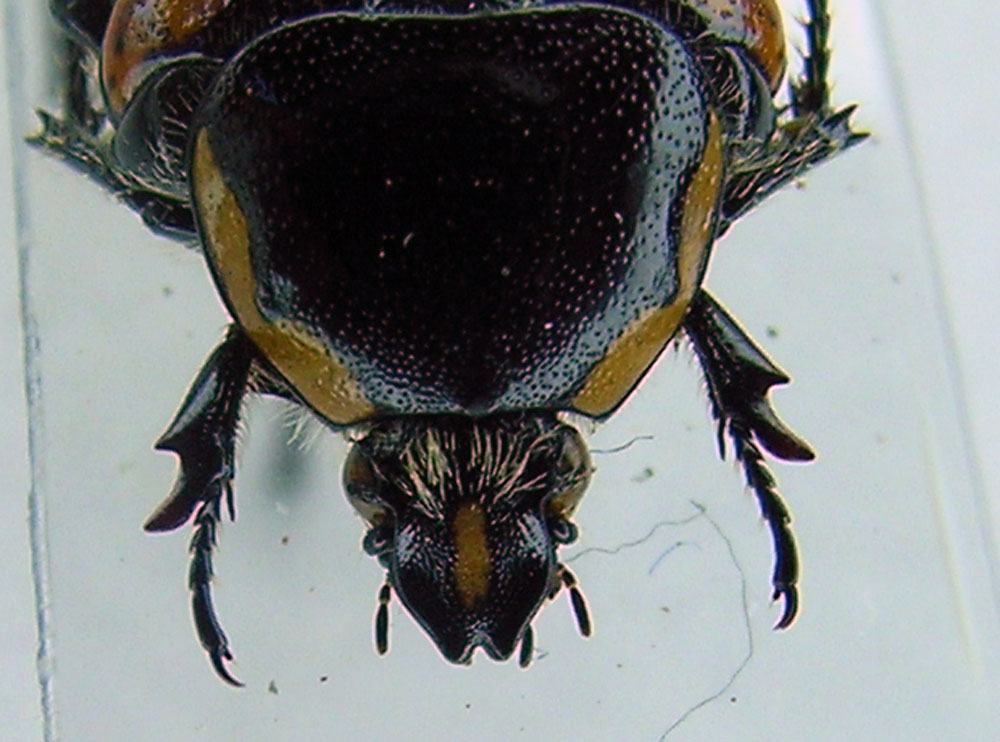 Poi se guardi bene la testa noti che: è pelosa (e nelle Pachnoda non lo è), e il clipeo sembra essere bidentato, mentre nelle Pachnoda è come nelle nostre Protaetia (vedi P. cuprea, ad esempio) ovvero anteriormente piatto o appena bilobato, leggermente concavo al centro.