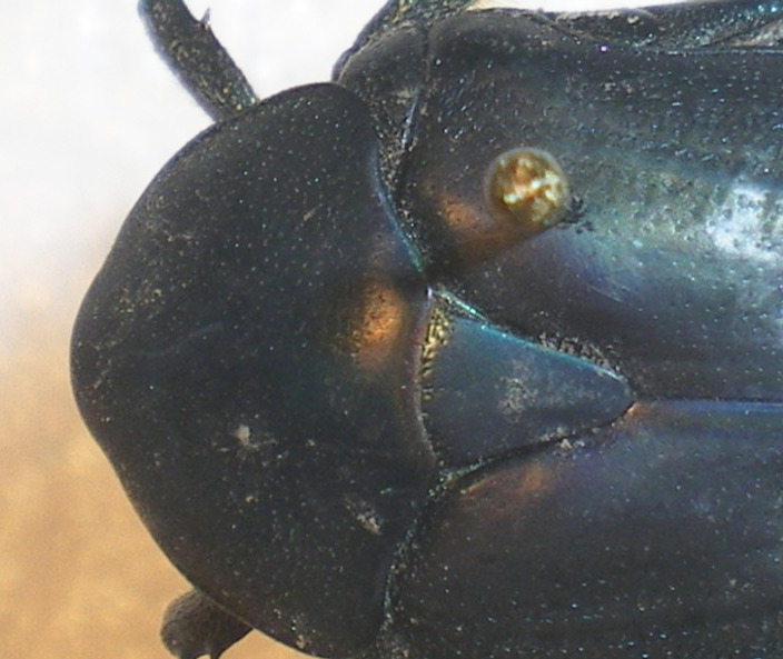 La colorazione delle elitre è un pò alterata: sono meno evidenti i riflessi blu (che però ci sono su scutello e pronoto) e tende al nero opaco.